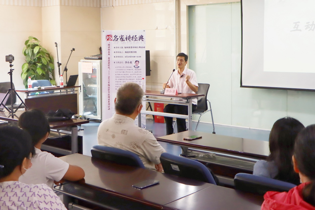 海淀区图书馆长期坚持社会服务和文化普及,通过丰富的阅读推广活动,充分提升区域文化素养、凝聚文化认同、增强文化自信。北京师范大学文学院作为国内中文学科的双一流建设单位,始终积极承担时代责任,关注中华优秀传统文化的创造性转化与创新性发展,关注学术资源的转化推广和社会服务。由双方共同举办的海淀诗词会“名家讲经典”系列讲座,为市民深入理解古诗词开启了更为丰富的路径。在未来,北京师范大学也将继续与海淀区图书馆合作,开展海淀诗词会比赛等更多活动,在传统文化推广领域不断深耕细作,传承文化经典,弘扬中华优秀传统文化。