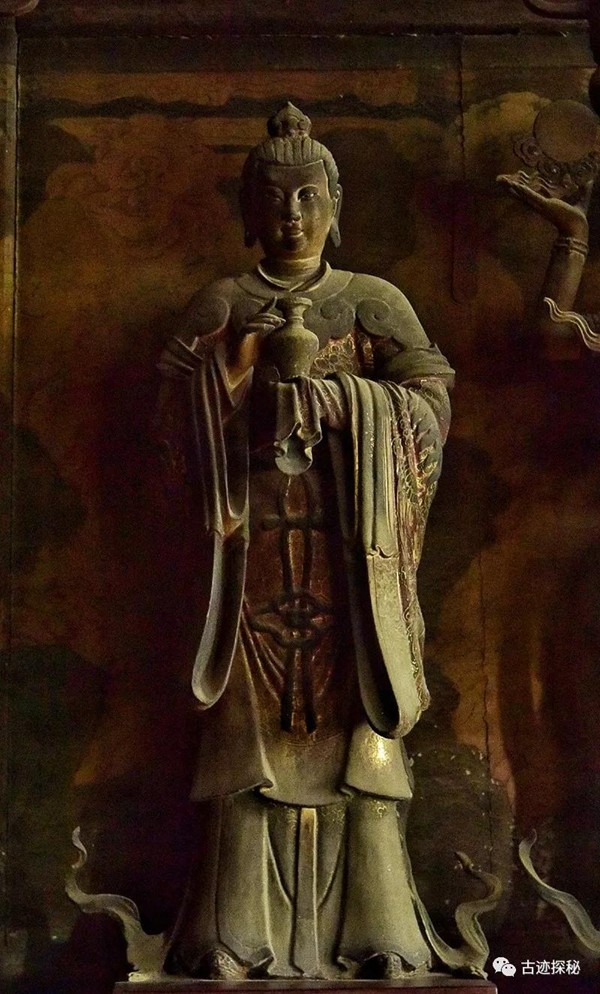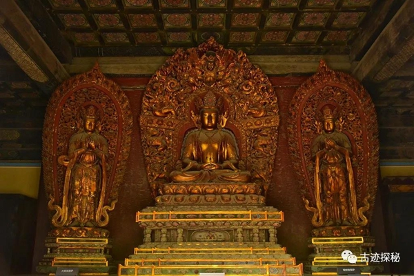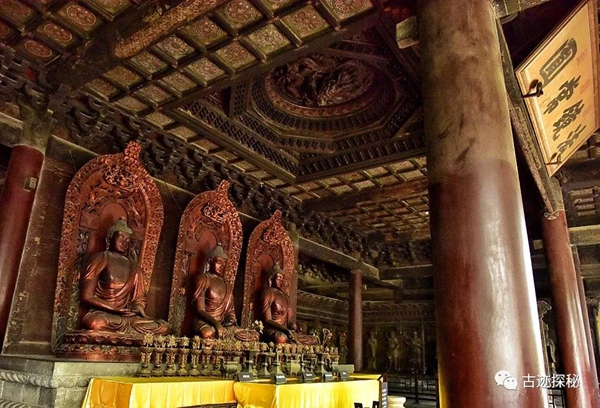 大雄宝殿背后是无量寿佛殿,檐下悬挂乾隆御笔“动静等观”牌匾,殿内供奉一佛二菩萨,其背后是悬塑海岛观音。世事无常变迁中,自有达观豁达的警示气质,任何地方都可驻足,任何地方,都难称归宿。他们不让自己去惊扰世界,也不让世界惊扰到自己,多么简单的要求,为什么芸芸众生却无法拥有?世人性本清净,万法自从性生;思量一切善事,即生善行。