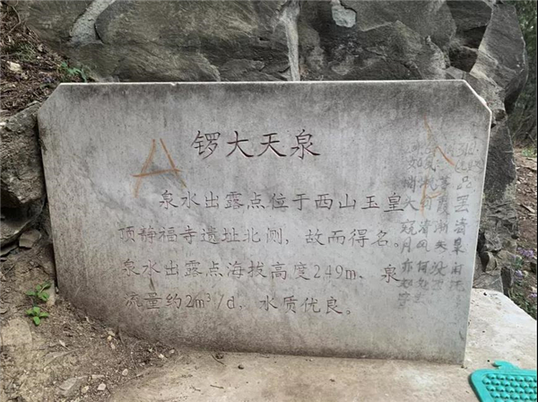 走过山门后,大大小小的石刻随处可见,以及锣大天泉和拥有不同时期三块标识的古树。