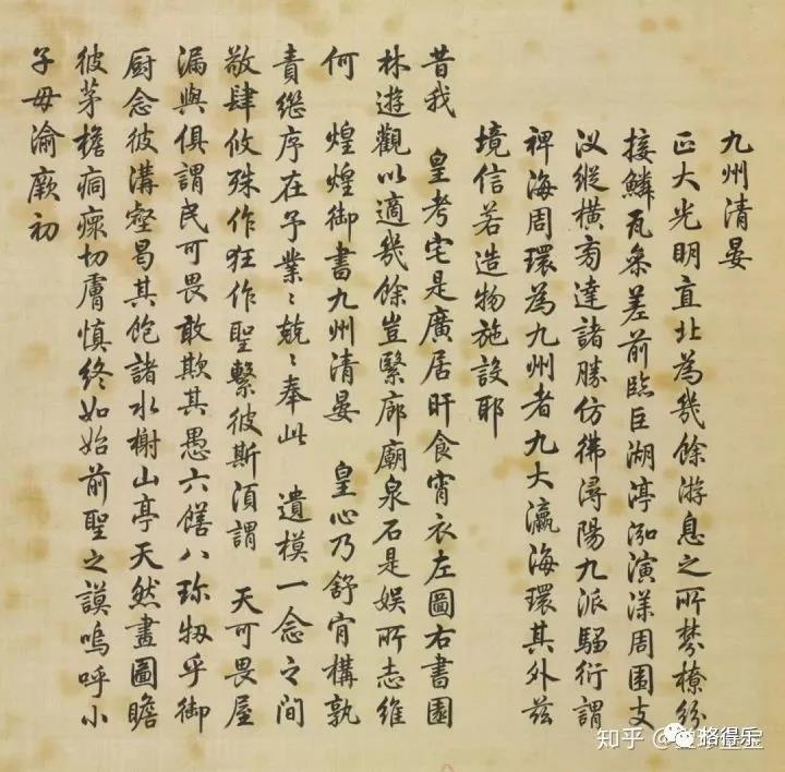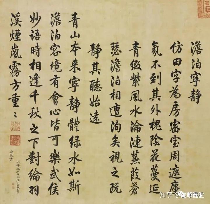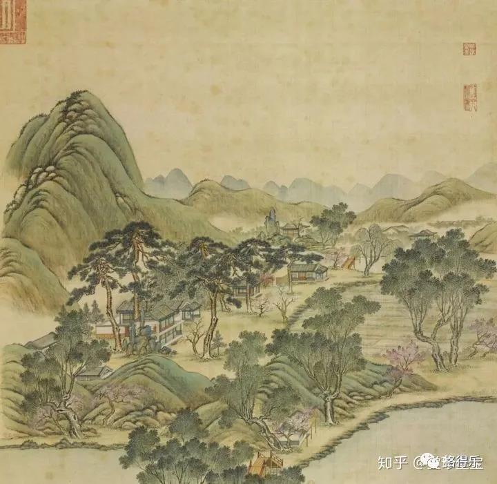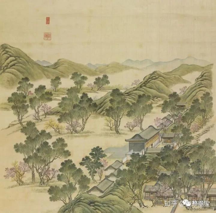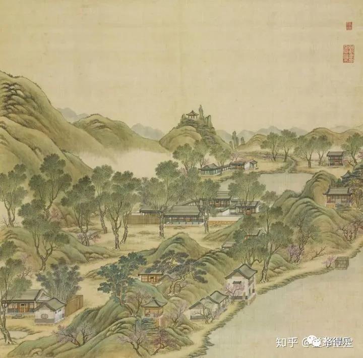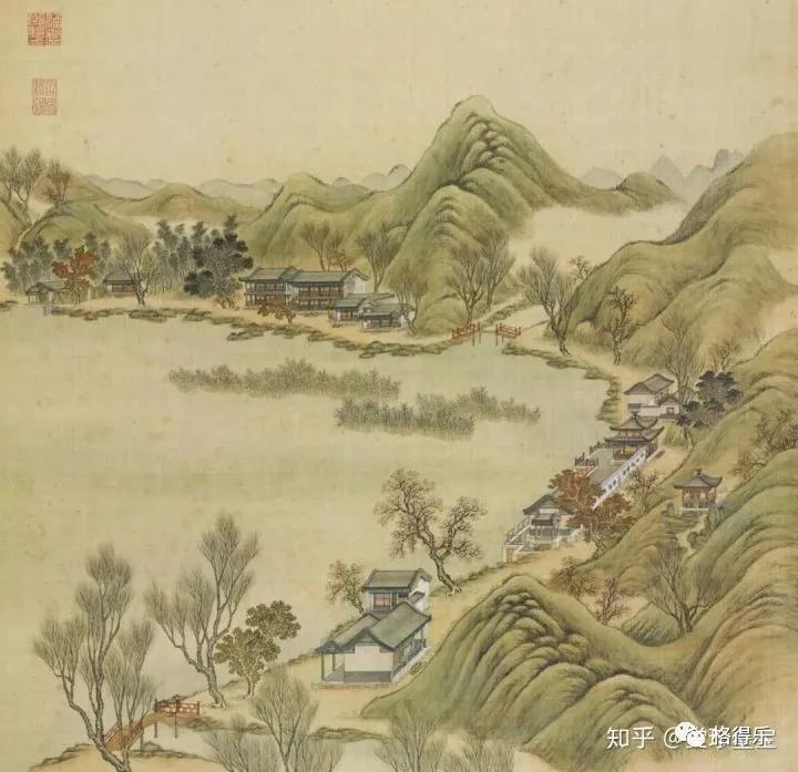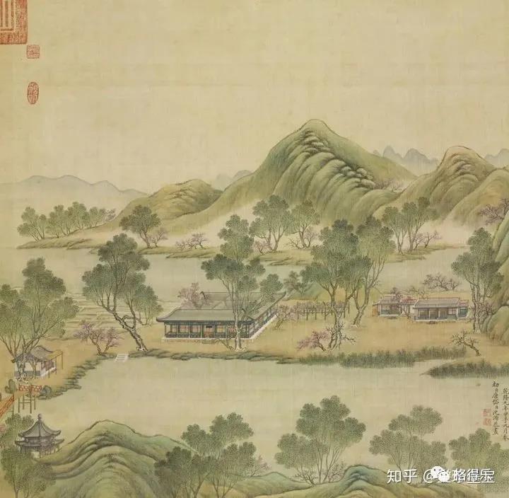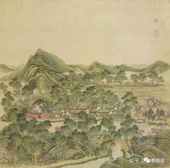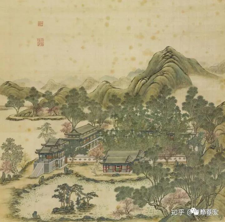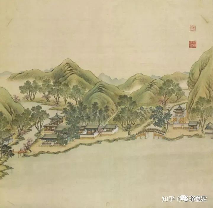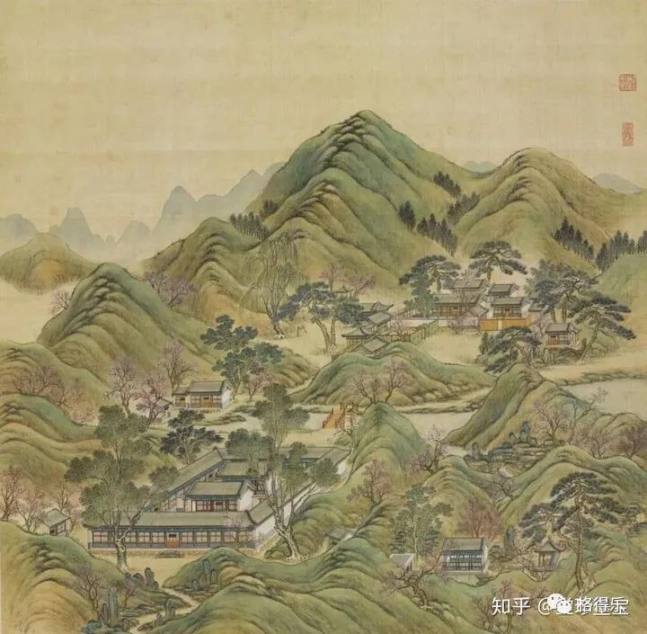盛时的圆明园有长春园、绮春园、圆明园等一百多处园林风景群,四十景是指园内独成格局的40处景群,而每一景就是其中一座"园中园"或园林建筑群。乾隆元年(1736年)正月,弘历即传旨如意馆画师冷枚:按康熙朝绘制的避暑山庄三十六景图,为圆明园各"殿宇处所"起稿分景画样。其后不久又改令唐岱、沈源二人绘画。由沈源画房舍,唐岱画土山树石。后来周鲲等人也参与了这套"圆明园大册"的绘制。起初这套图仅绘了33景,乾隆六年增入方壶胜境、蓬岛瑶台和慈云普护3图,乾隆九年九月又增入鸿慈永祜、汇芳书院、洞天深处和月地云居4图,从而最终成为《四十景图》。《四十景图》为绢本彩绘,各幅图分别附有汪由敦所书弘历《四十景题诗》,共计40对幅,每对幅为右图左诗。每幅图的绢心64×65厘米,连装池绫边为83×75厘米。全图分为上下两册,配楠木插盖匣盛装。首册画页之前分裱雍正书《圆明园记》和乾隆书《圆明园后记》。在上下册各最后一景的图、诗末尾,分别款书"乾隆九年甲子九月奉敕,臣唐岱、沈源恭画"和"工部尚书臣汪由敦奉敕敬书"字样。这套四十景彩绘图,直至乾隆十一年四月,才最终裱成呈进,又经装配木匣之后,在十二年(1747年)六月,奉旨正式安设于圆明园奉三无私殿呈览。