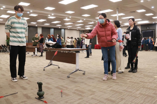 在“古代运动会”项目竞技现场同样引来了大家的欢笑和嬉戏声。现场,大家互相鼓励,分享参与心得,有的还开始在现场当起教练,指导着第一次参与竞技的伙伴。在完成蹴鞠、射箭、投壶三项体育竞技后,获得积分的参与者,还可以前往兑奖处,兑换自己心仪的花束及小礼品。“三八节,可以在感受儿时快乐的同时,参与体育活动,并通过自己的努力获得花束,确实让我度过了一次非常甜蜜的节日。”一位参与者说到。