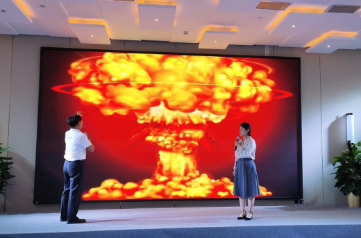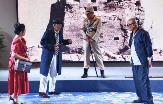 海图北馆所在海淀区北部,共产党领导人民群众前仆后继,谱写了一幕幕可歌可泣的英雄篇章。原创情景剧《西山红色交通线》则是一部海淀北部百姓“自编自导自演”的,以“真人真事”为创作背景,以“真情实感”深情的演绎,“奏响”了第二篇章“党的发展”。在震耳欲聋的呐喊中,诗朗诵《红船》呈现出中国革命的先行者们,创建中国共产党的历史画面。随着绚丽多彩的蘑菇云腾空而起,情景朗诵《“两弹元勋”邓稼先》生动描画了中国核武器研制工作的开拓者和奠基者邓稼先为祖国无私奉献的一生。振奋人心的演绎将全场气氛推向高潮。