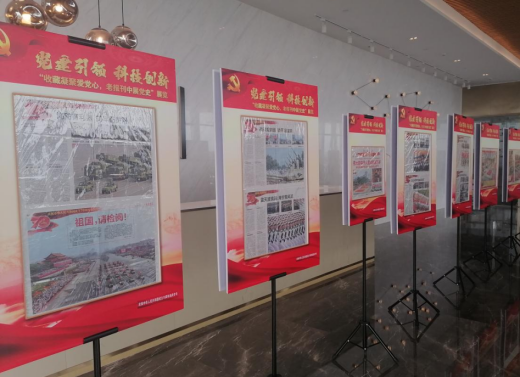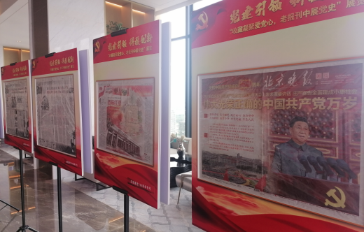 中关村壹号展厅内,以“收藏凝聚爱党心,老报刊中展党史”为主题的展览,展出了集报爱好者顾玉超收藏的100余张珍贵的老报纸,开国大典当天和每年国庆日的报纸,1949年后党的历次代表大会的报纸、号外等珍贵报刊藏品,记录了中国共产党的发展历程。展出的报纸以《人民日报》为主,还包括《北京晚报》《文汇报》《天津日报》等报刊十余种。